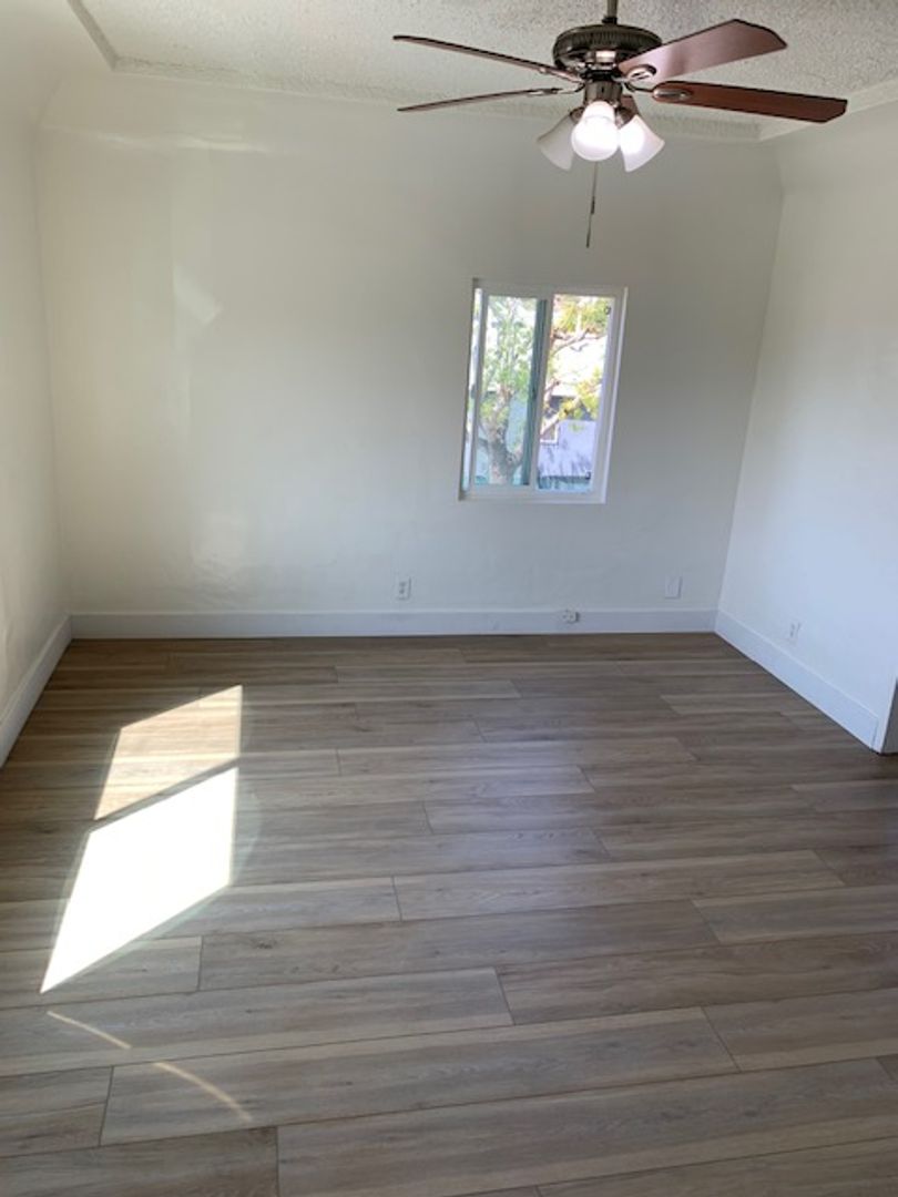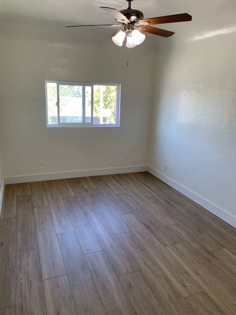 2 Bedroom, 1 Bathroom apartment for rent. Upstairs unit behind locked gate. Easy access to the 10 freeway. New wood like vinyl floors throughout. Ceiling fans throughout. Stainless steel sink and room for storage. Water and Trash included. Street parking only.