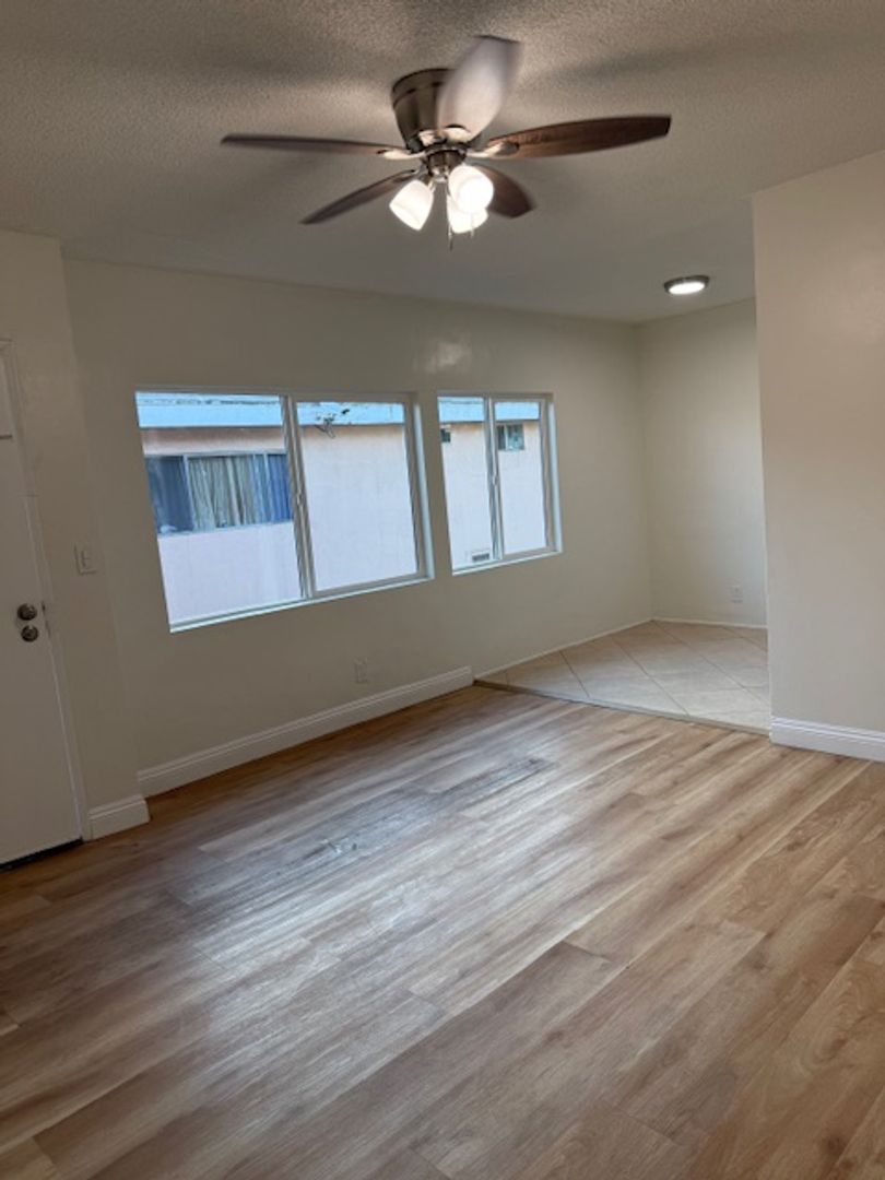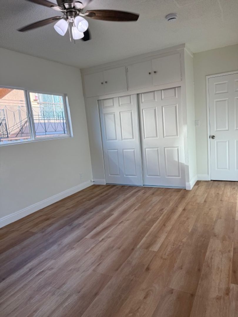 Newly renovated 1 bedroom, 1 bathroom in the community of Boyle Heights. This unit is unique and includes 2 assigned parking spots. The home is fresh and ready to move in with new shaker kitchen cabinets and quartz countertops. Beautiful luxury wood vinyl floors installed through out this second story unit. New ceiling fans in both living room and bedroom to keep you cool. The apartment includes an assigned parking spot in a gated parking lot. Easy access to I-5, 1-10 and I-101 minutes from shopping and schools. Home is fresh, clean and ready to move in.